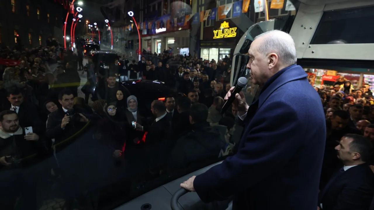 Merkez Camisi önünde kendisini bekleyen hemşehrilerini eşi Emine Erdoğan ile selamlayan Cumhurbaşkanı Erdoğan, makam aracından inerek, otobüse geçti.