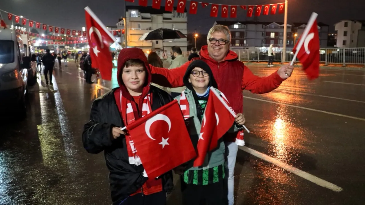 Kocaeli dışında İstanbul, Bursa, Yalova, Bilecik ve Eskişehir gibi illerden Kocaeli Stadyumu'na akın eden taraftarlar, milli coşkuya binlerce Türk bayrağı dağıtarak ortak olan Büyükşehir Belediyesi'ne teşekkür etti.